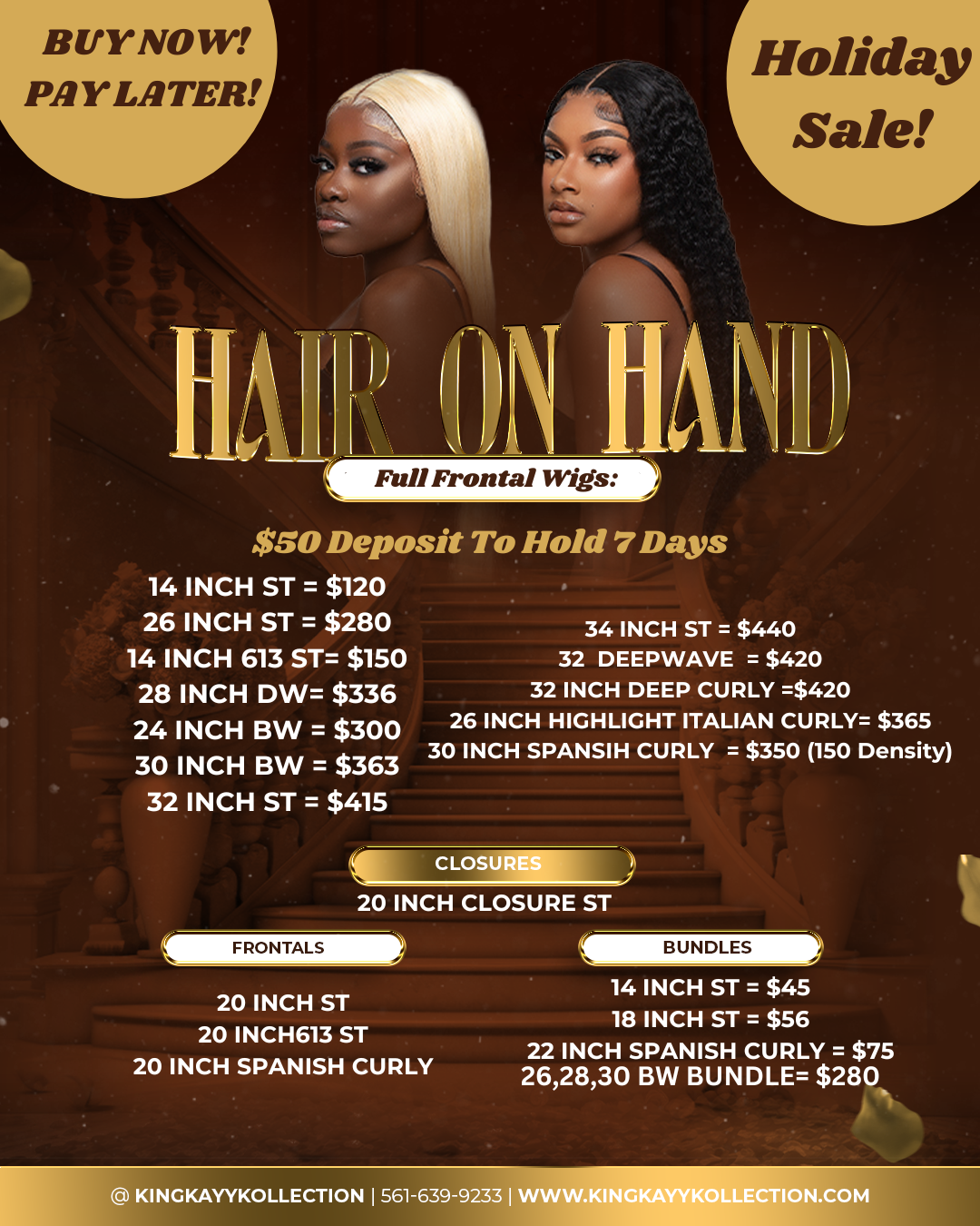 Please include in note or text us what wig your making a deposit for .